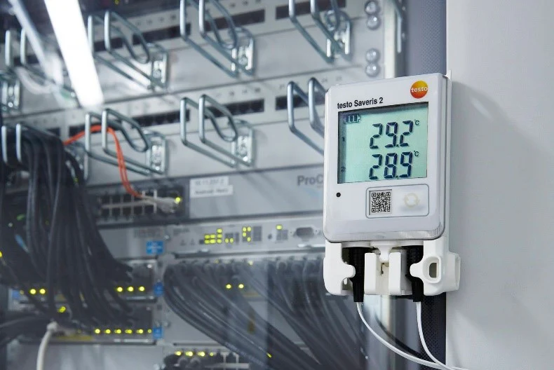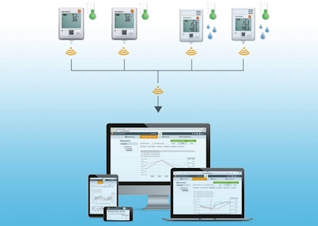 PAVYZDYS. Gamintojo Testo sistema „Saveris“, skirta nuolat matuoti patalpų ar šaldytuvų, kuriuose gaminami ar laikomi maisto produktai ar vaistiniai preparatai, temperatūrą bei drėgmę ir skubiai informuoti klientą apie rodiklių nuokrypius.